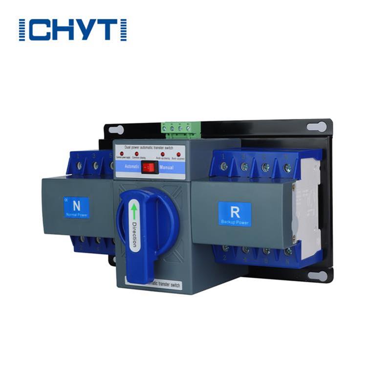 Chinese fabrikanten ICHYTI lage prijs dubbele automatische omschakelaar wordt voornamelijk gebruikt in noodstroomvoorzieningssystemen met een nominale spanning van niet meer dan 1000VAC of 1500VDC. Het functioneert om de stroomtoevoer naar de belasting te onderbreken tijdens de stroomconversie en bestaat uit een of meerdere elektrische apparaten met omschakelaar, samen met andere noodzakelijke elektrische apparaten die worden gebruikt om het stroomcircuit te bewaken en automatisch een of meerdere belastingcircuits over te dragen van de ene voeding naar de andere. automatische omschakelaar met dubbel vermogen wordt in de elektrische industrie gewoonlijk een "automatische omschakelaar met dubbel vermogen" of "dubbele stroomschakelaar" genoemd.