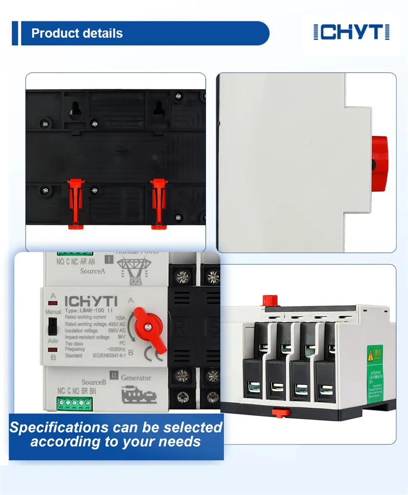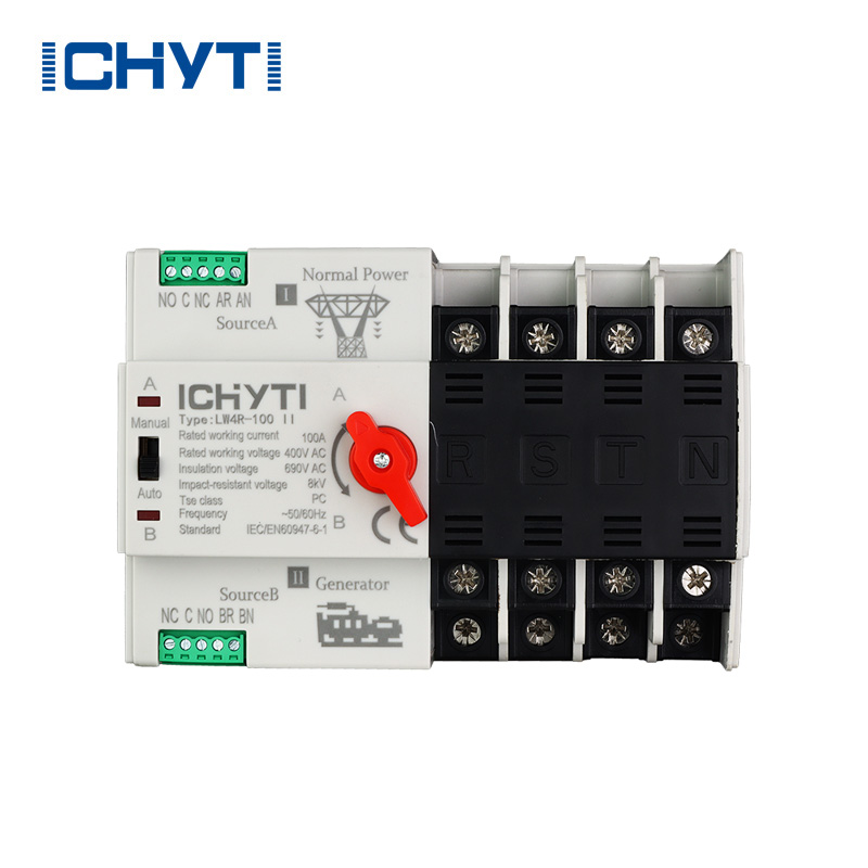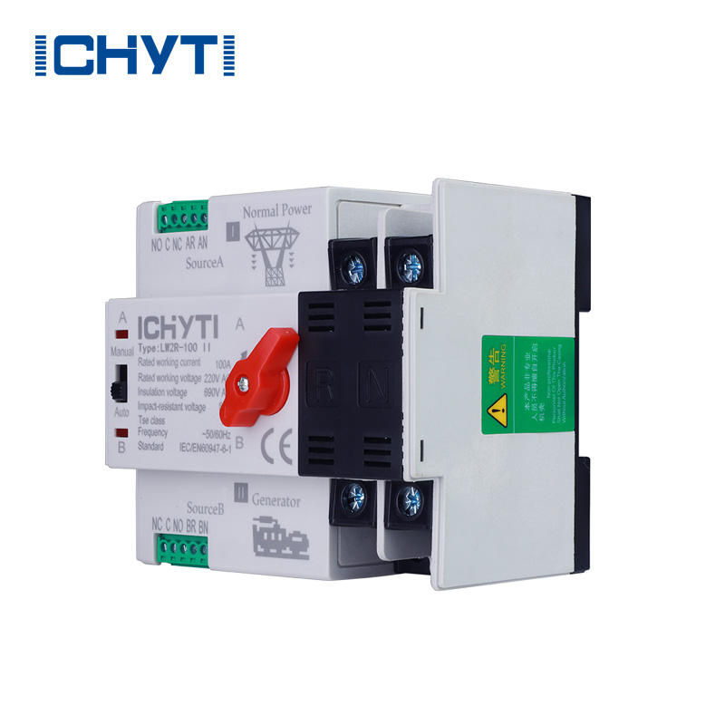 China Fabriek ICHYTI Groothandel Koop Korting eenfasige automatische omschakelaar heeft drie schakelfuncties in het voedingssysteem van een driefasig vierdraads elektriciteitsnet, inclusief automatisch schakelen van standby-voeding, back-upvoeding en elektriciteitsnet en generator. Het kan de effectieve waarde van de driefasige spanning en de effectieve waarde van de fasespanning en de fase van twee stroombronnen in realtime detecteren en automatisch overschakelen van abnormale stroombronnen naar normale stroombronnen in geval van overspanning, onderspanning of faseverlies in elke fase.